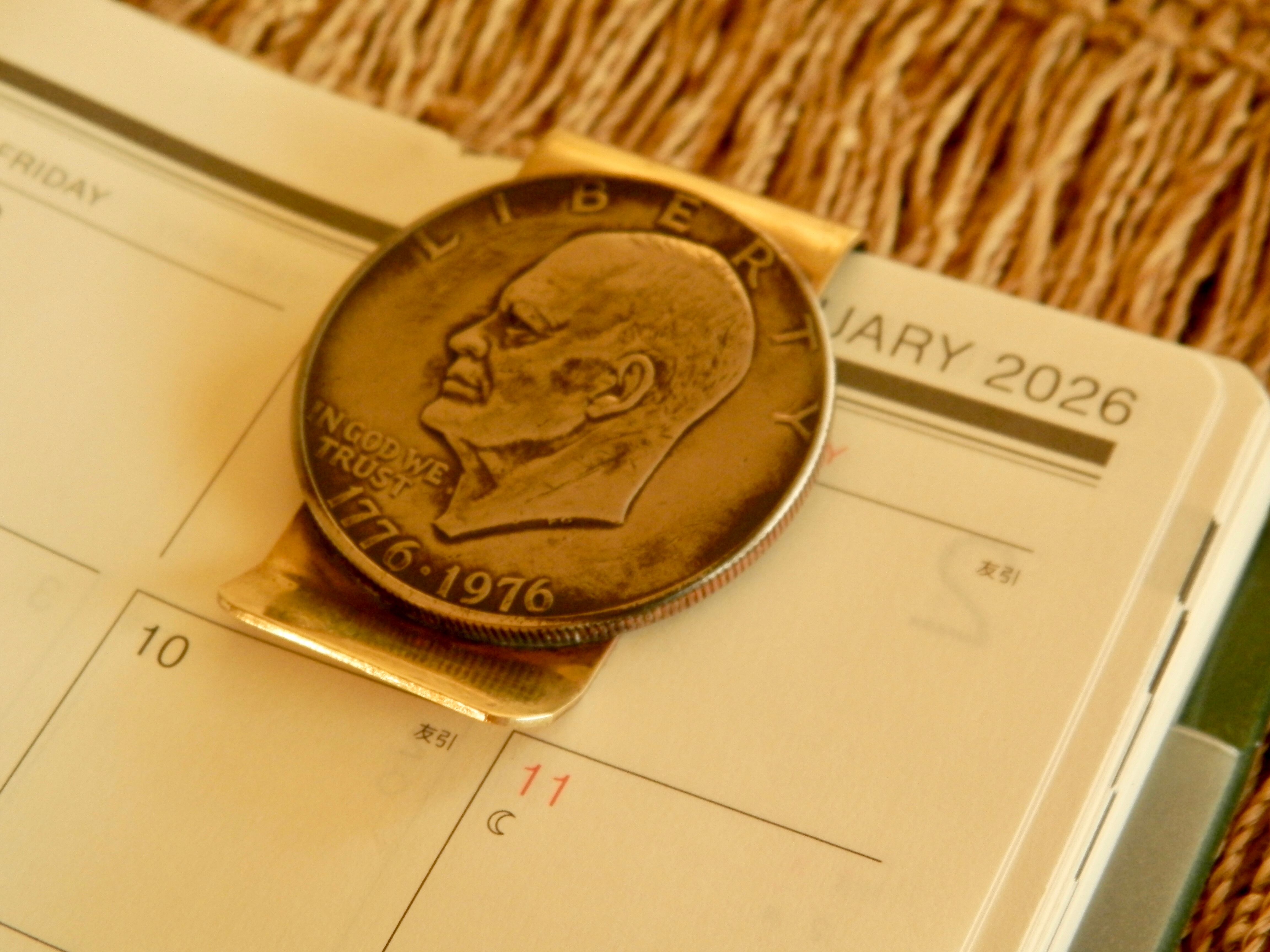 USAの大型コイン1dollarを真鍮製のマネークリップに装飾した作品です。