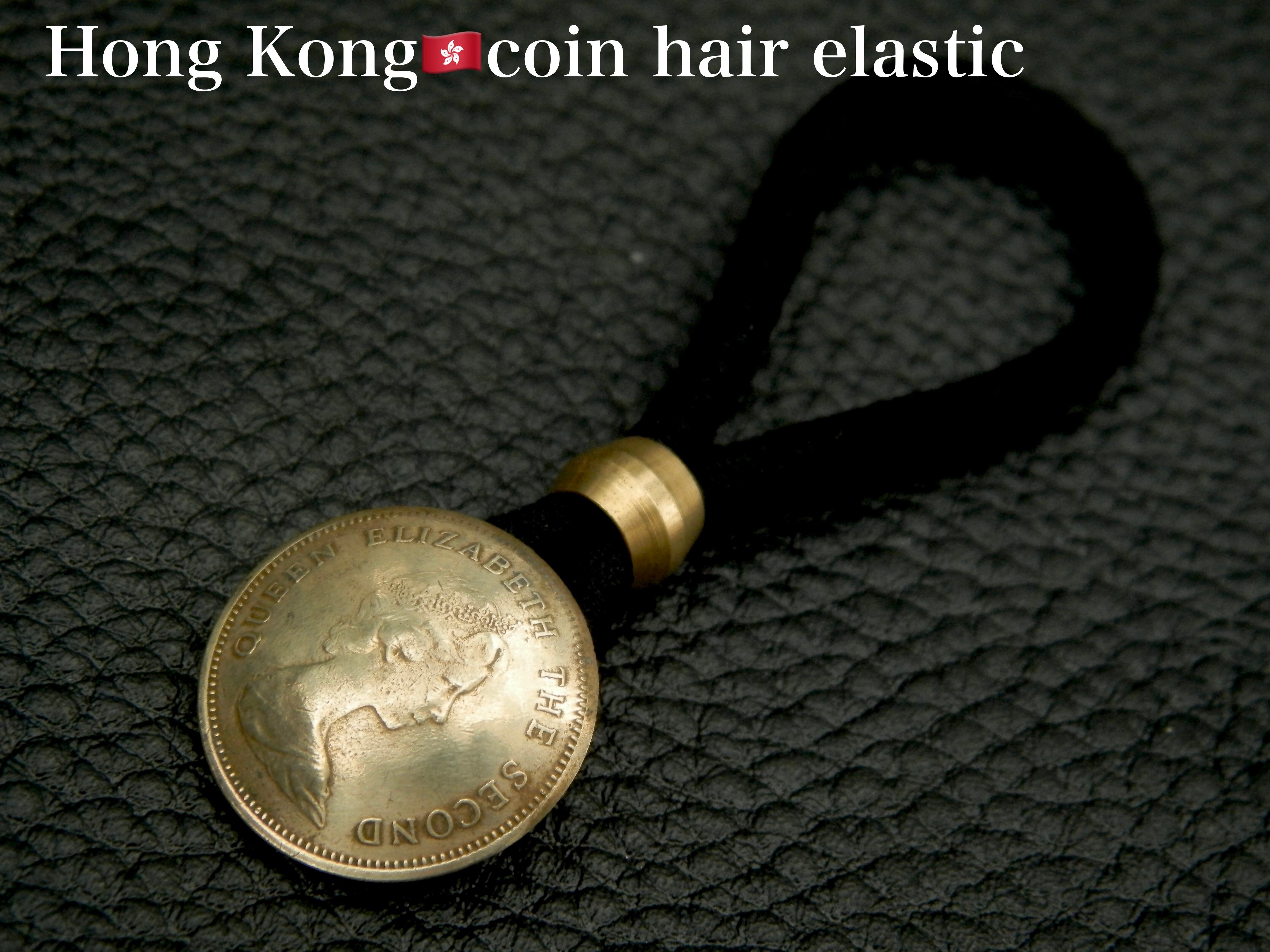 英国統治時代の香港50セントエリザベスコインをヘアゴムと芯合わせし、コンチョ型に加工した作品です。