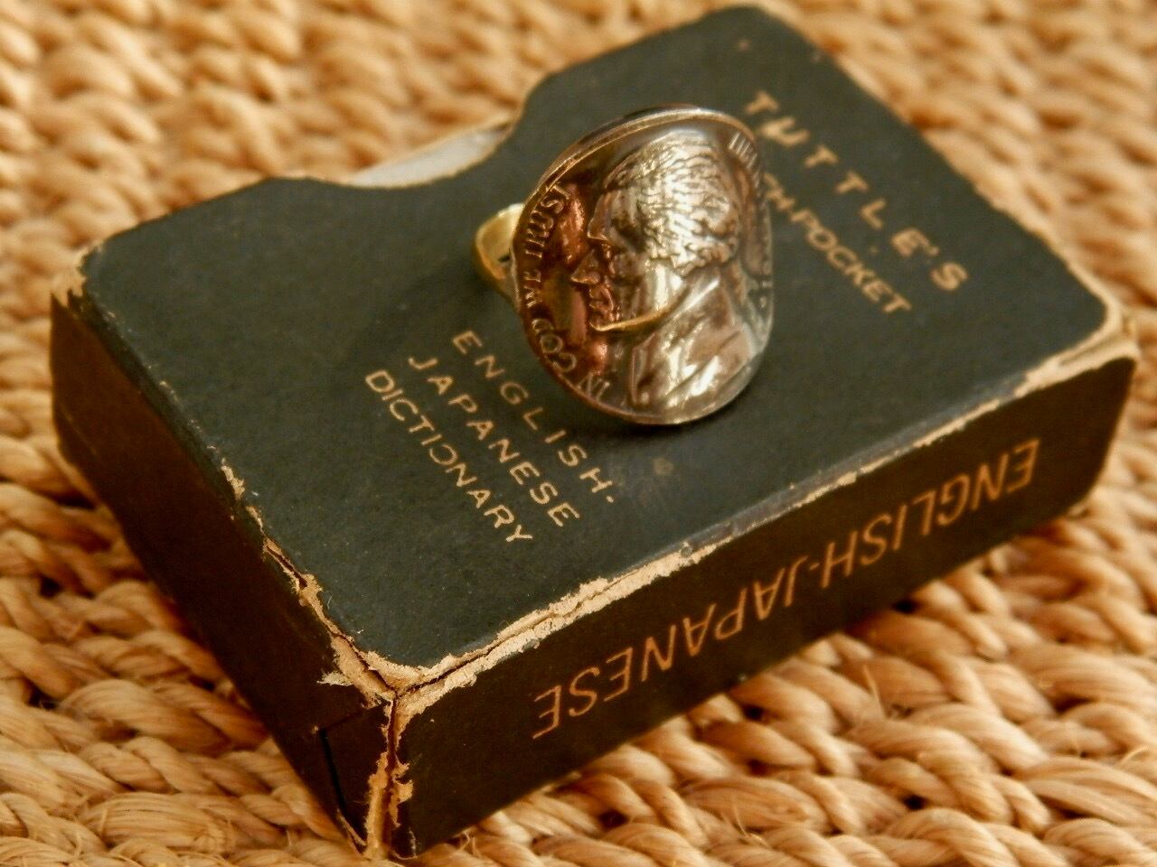真鍮板をリング状に加工してUSAの5centコインをシールド状に折り曲げ組み合わせたCoin All Ring。
