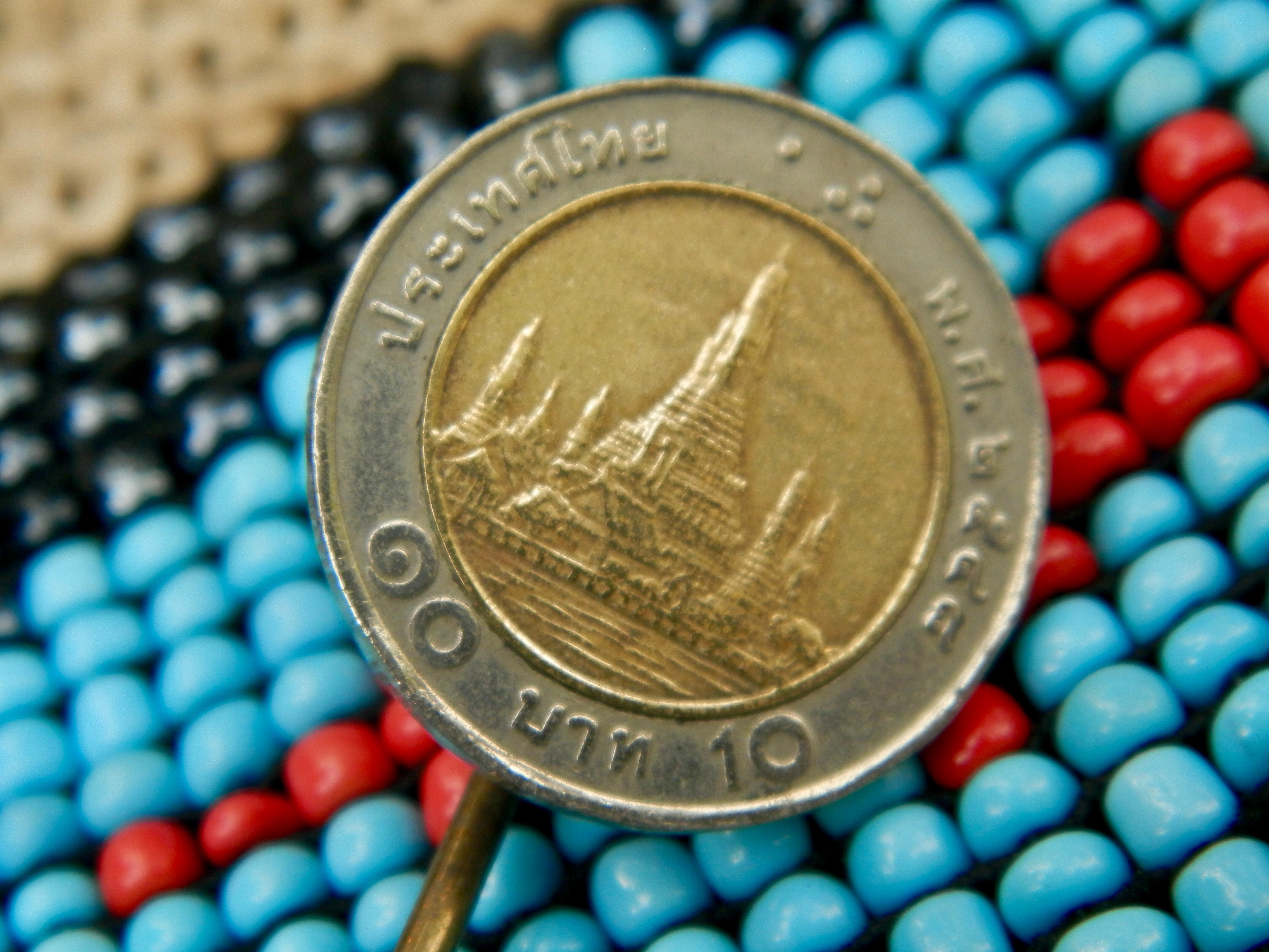 タイの10バーツコインをコンチョにして真鍮製のポニーフックに取り付けた作品です。